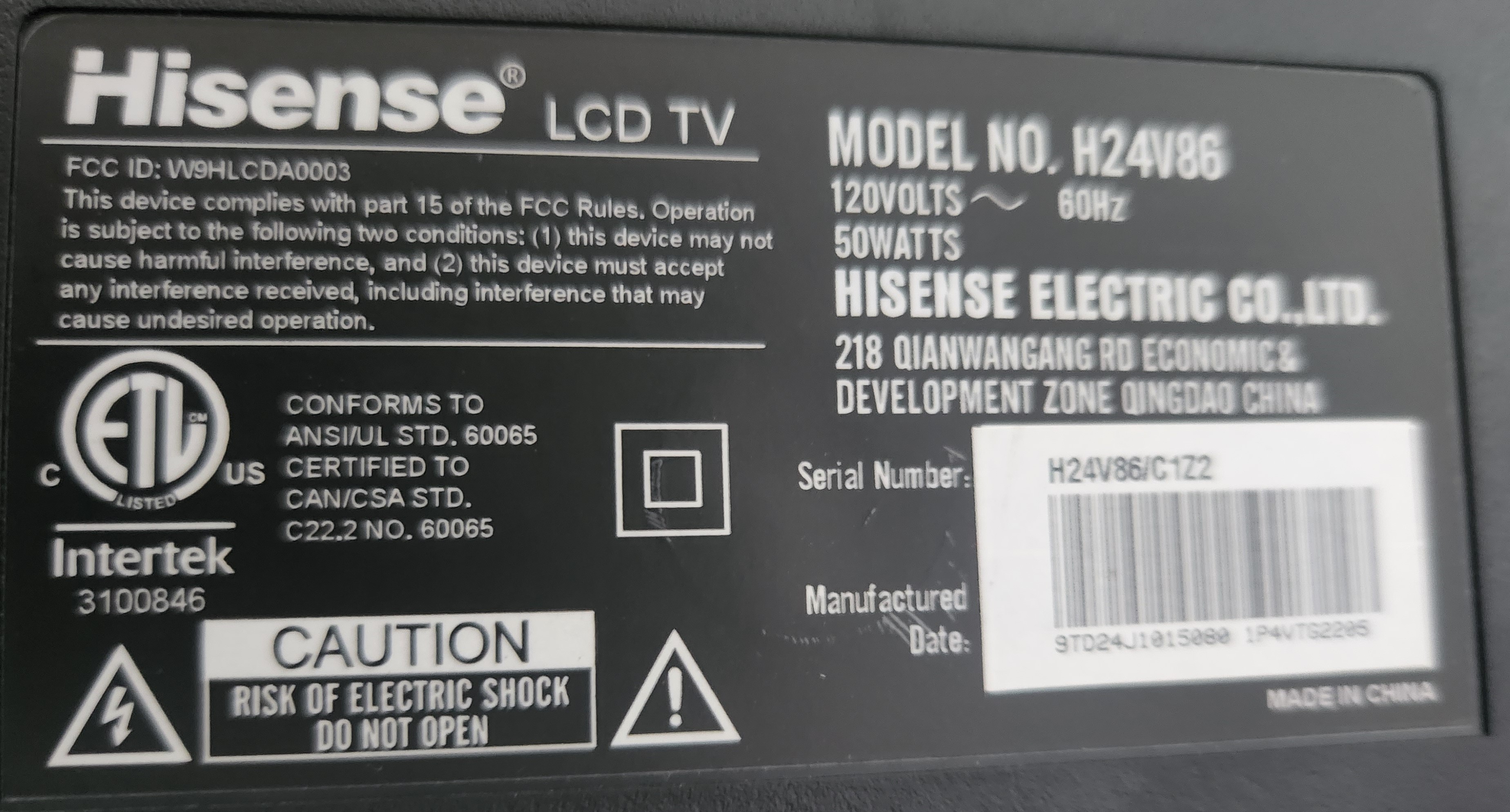 | 5 | Hisense | H24V86 | ![]() | Working | |||