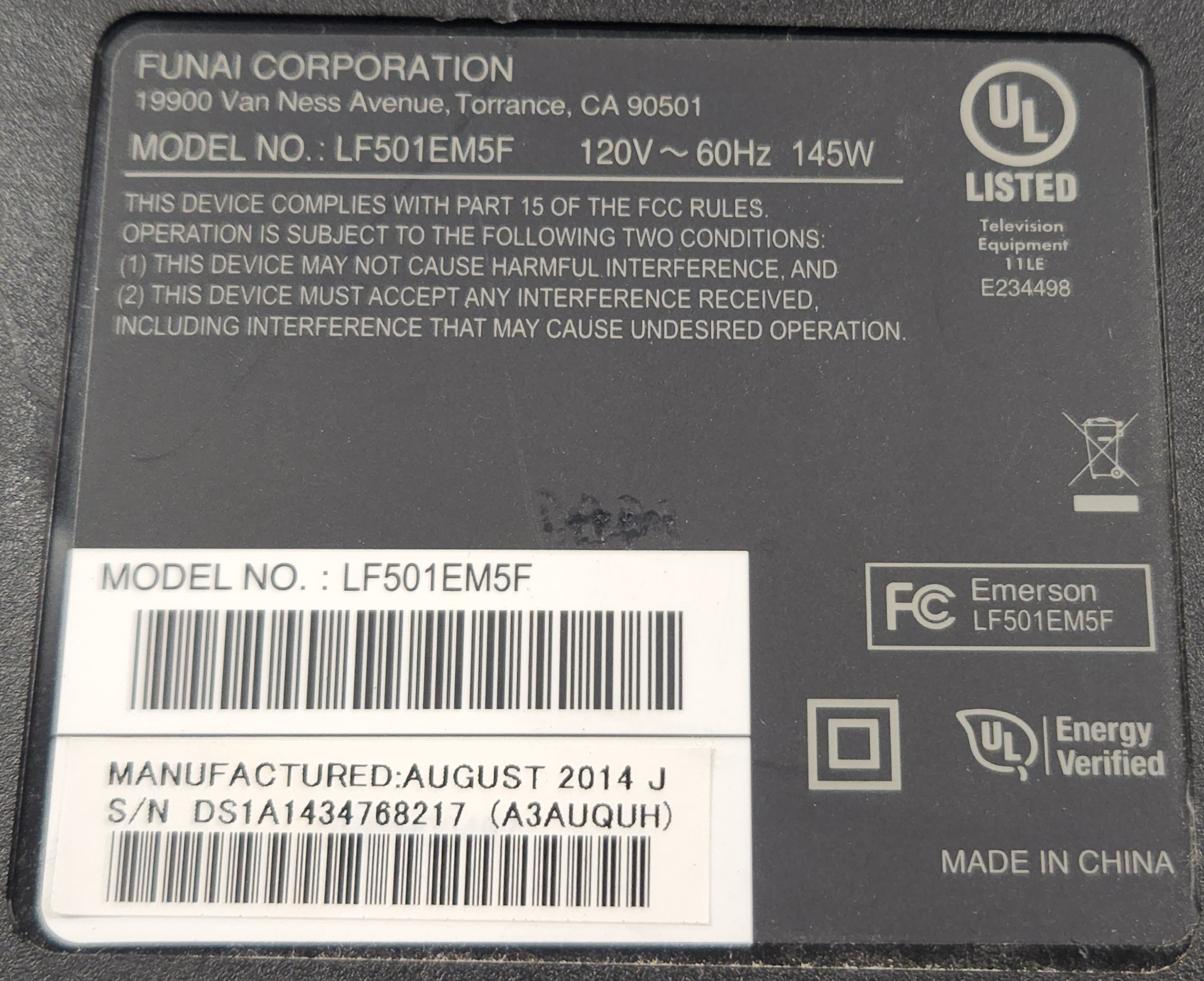 | 4 | Emerson | LF501EM5F | ![]() ![]() | Non-functional | |||