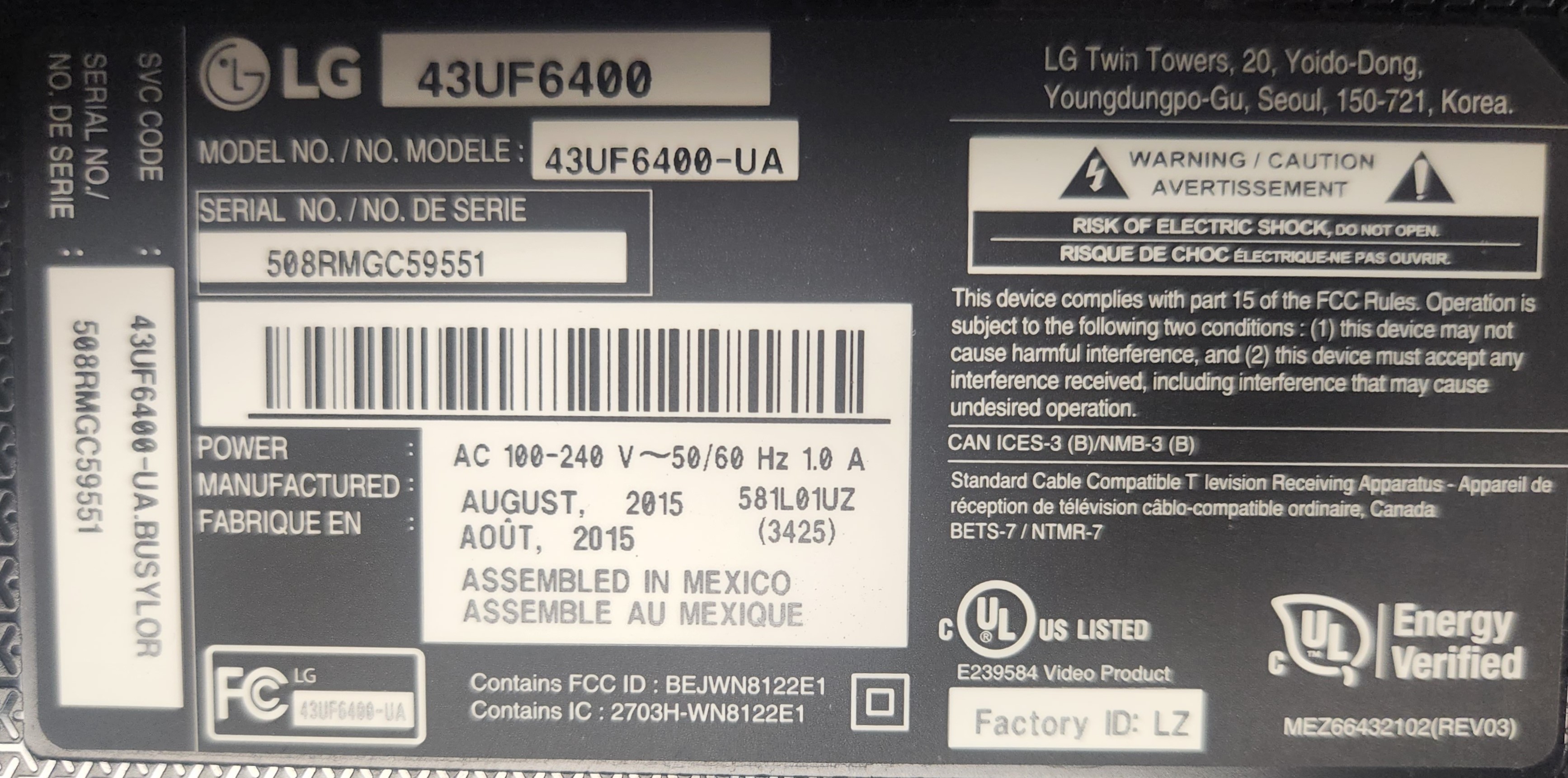 | 8 | LG | 43UF6400-UA | BUSYLOR | ![]() ![]() ![]() ![]() ![]() ![]() ![]() ![]() ![]() | Cracked Screen | ||