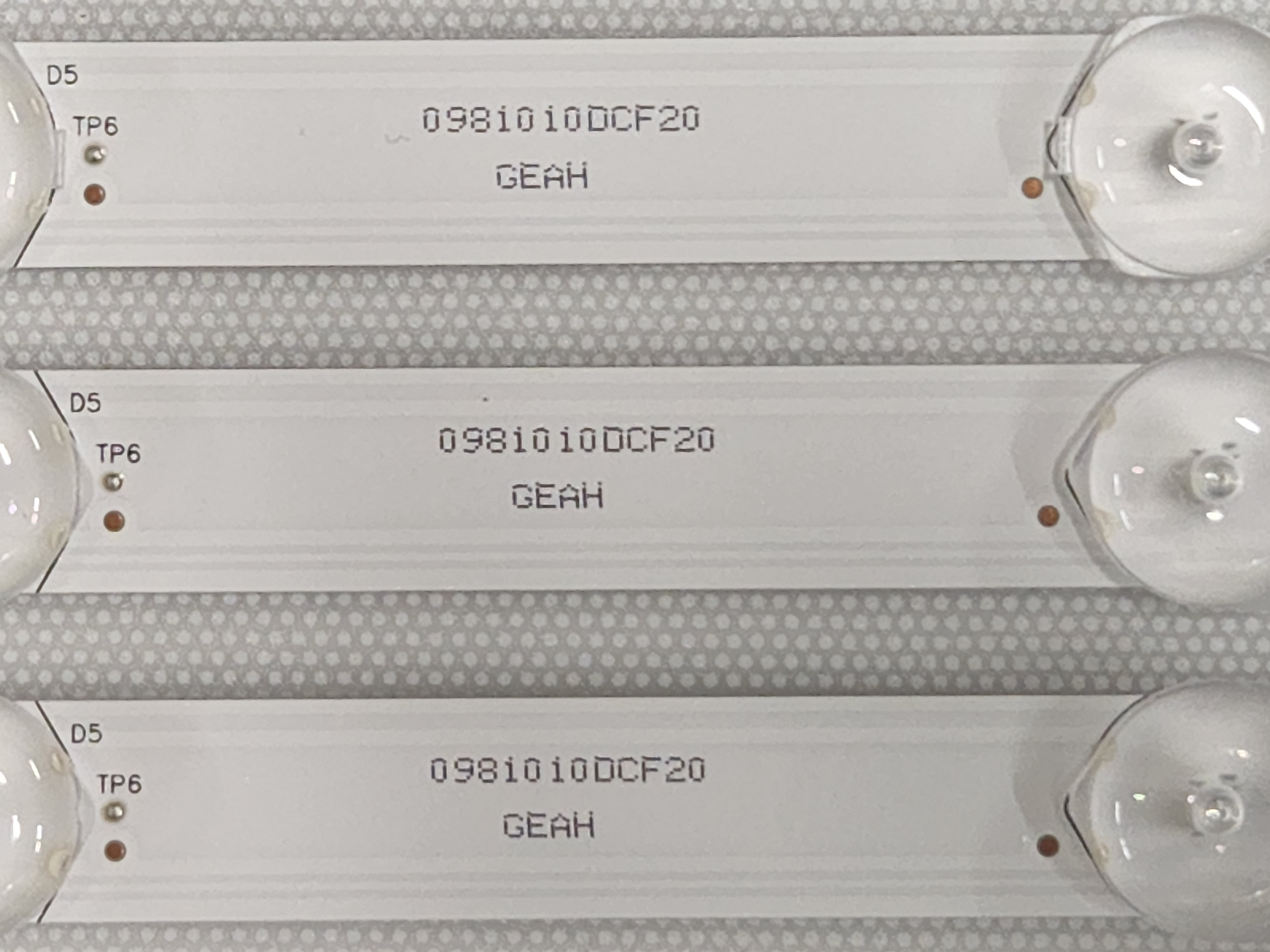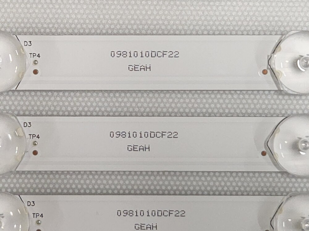 | 2 | LED Backlight Strips | 3 | 2 | Hisense 1215830 | 6 | yes | Itm#: 2 FrmTV: 2 Qty: 3 Bin#: 6 Tstd: 1 ItmTyp: LED Backlight Strips Hisense 1215830 | ||