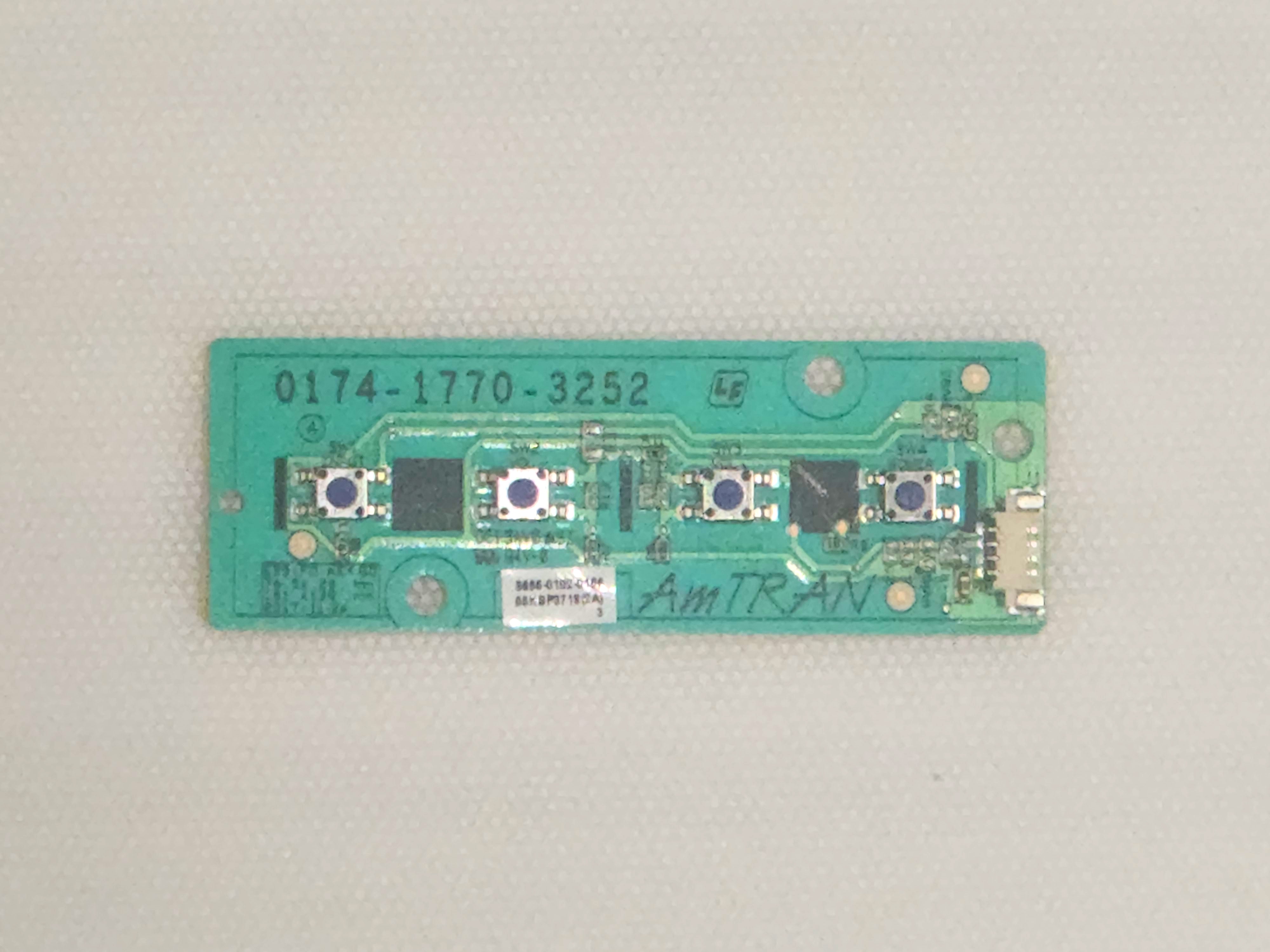 | 76 | Button Board | 1 | 3 | Vizio 0174-1770-3252 | 3 | yes | Itm#: 76 FrmTV: 3 Qty: 1 Bin#: 3 Tstd: 1 ItmTyp: Button Board Vizio 0174-1770-3252 | Model# on sticker 3655-0102-0156 | |