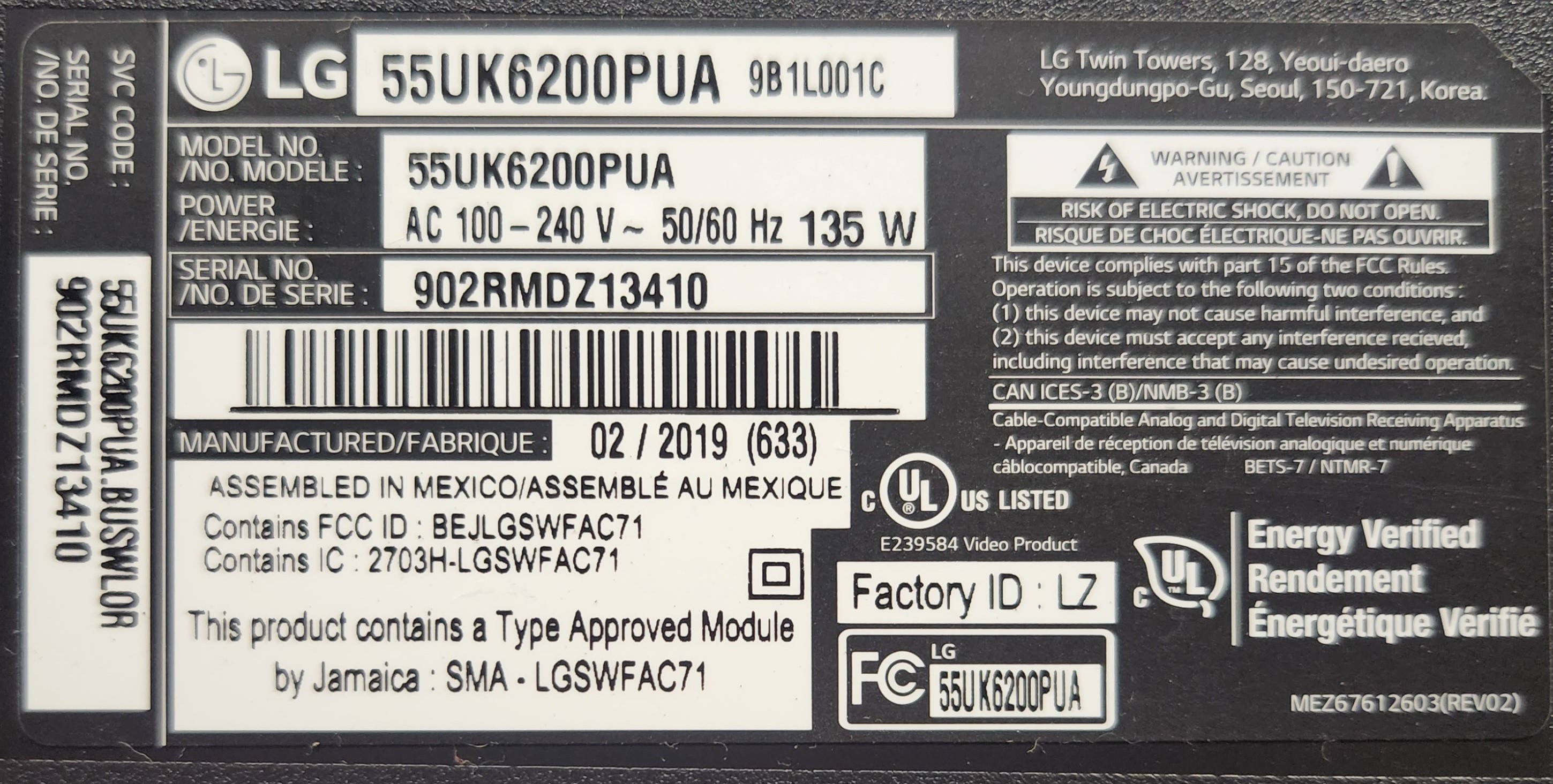 | 1 | LG | 55UK6200PUA | BUSWLOR | ![]() ![]() ![]() ![]() ![]() ![]() | Cracked Screen | ||