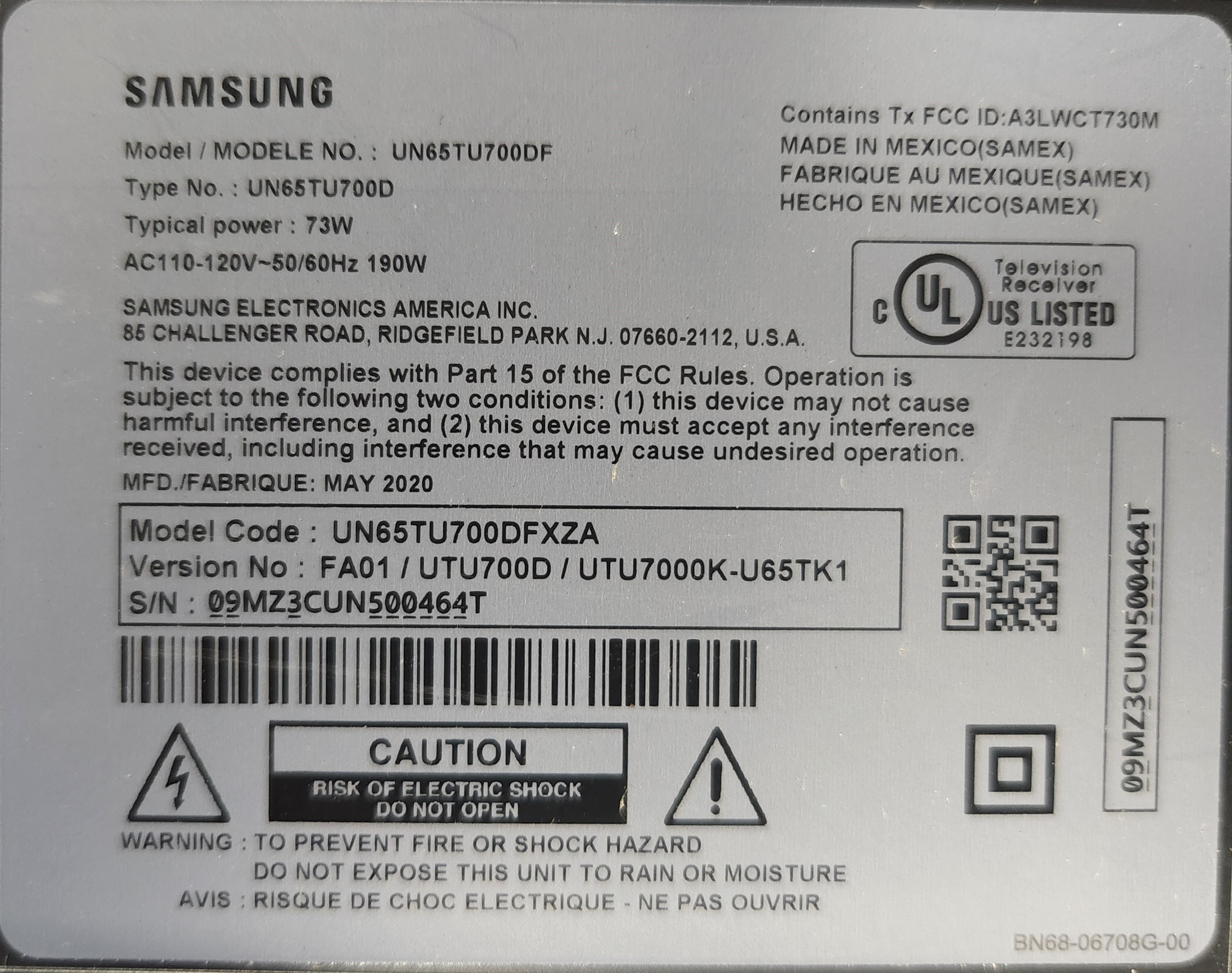 | 9 | Samsung | UN65TU700DF | XZA | ![]() ![]() ![]() ![]() ![]() | Cracked Screen | ||