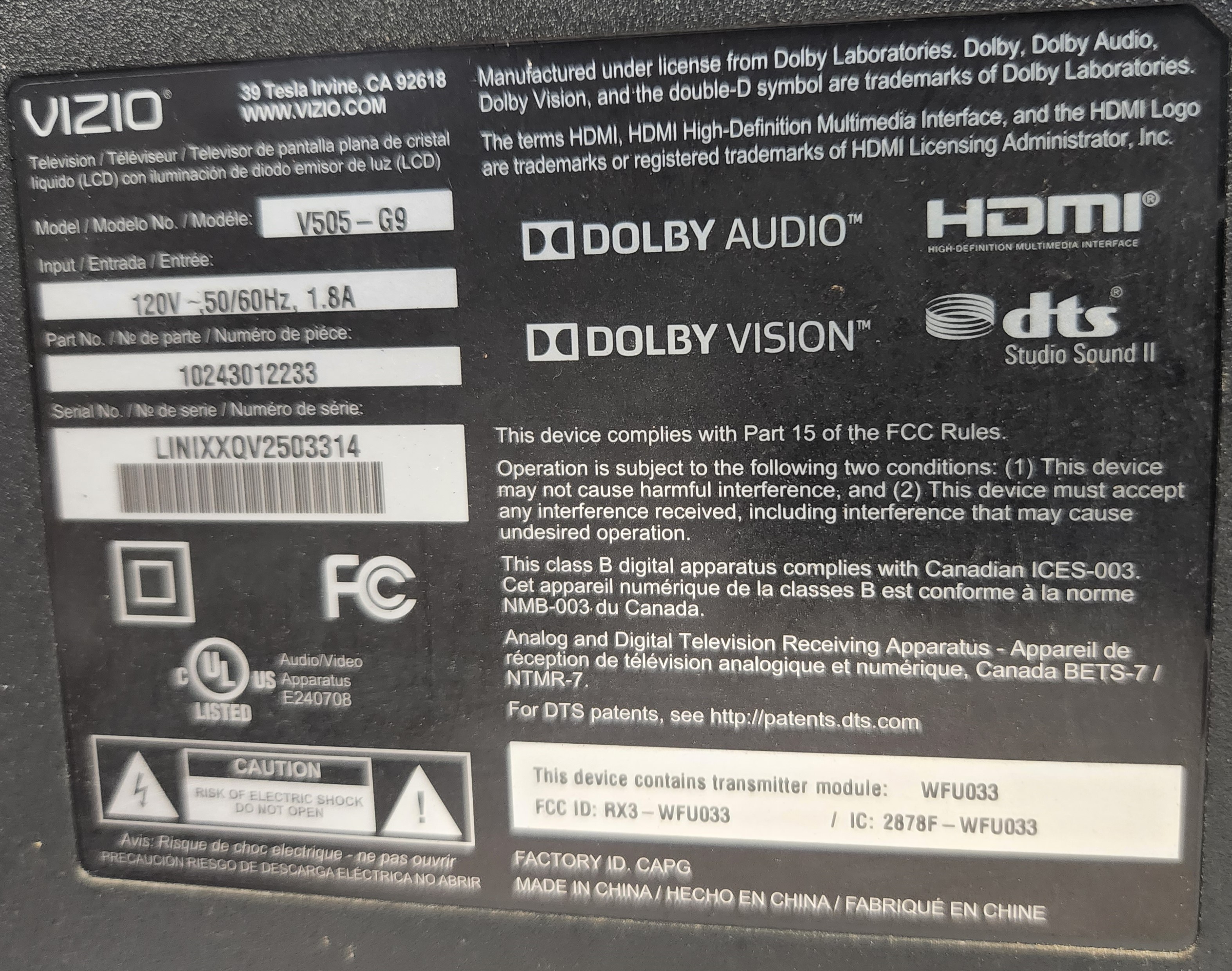 | 19 | Vizio | V505-G9 | ![]() ![]() | Working | |||